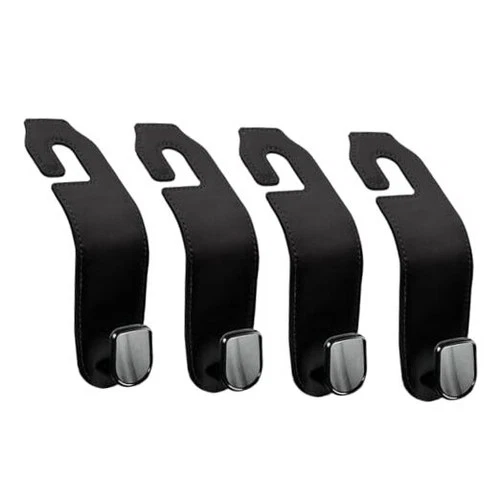Leather Seat Headrest Hook Purses and Bags Holder Hanger for Car 4 Pack Black