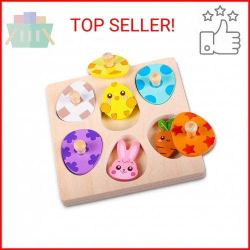 Waybla Easter Basket Stuffers - Easter-Themed Wooden Peg Puzzle for Toddlers 1-3