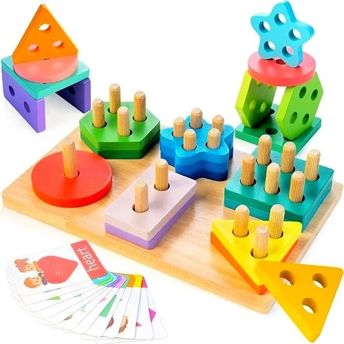 Shape Sorters for Toddlers 1-3 with 24-Piece Large Blocks & Medium, Rainbow