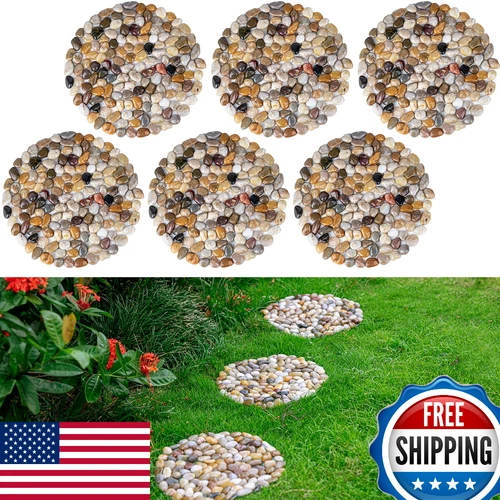 Natural River Rock Stepping Stones for Garden Walkway - Round Pebble Pavers 6-Pa
