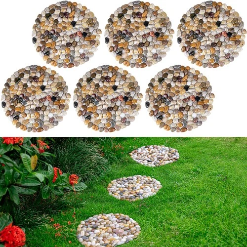 Natural River Rock Stepping Stones - Round Pebble Paver Mats for Garden Walkway