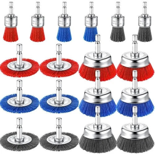 Nylon Filament Abrasive Wire Brush Wheel and Cup Brush Set with 1/4 Inch Hex