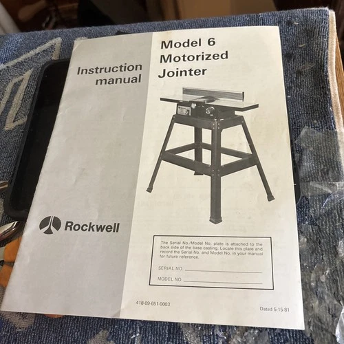 ROCKWELL/DELTA Model 6 Wood Jointer Owner Operator Parts Manual