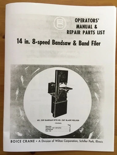 Boice Crane 14” 8-Speed Band Saw & Filer Operators' Manual & Parts List