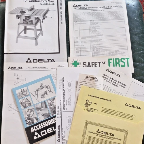 1995 DELTA 10" Contractor's Table Saw 34-444 Owner Instructions & Parts Manual +