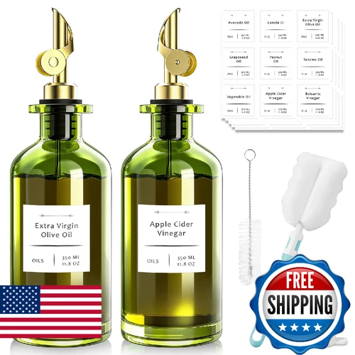 COOLMI Oil Dispenser for Kitchen - 12oz/350ml, Set of 2 Extra Thick Food Grade G