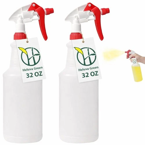 Heavy Duty 32oz Plastic Spray Bottles for Cleaning - Large - 2 Pack, Red