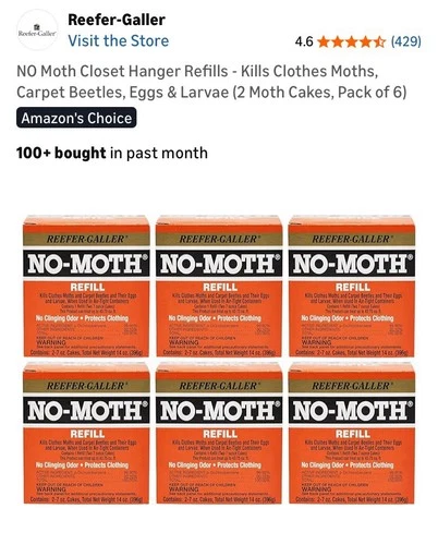 Reefer-Galler NO Moth Closet Hanger Refill Kills Clothes Moths, 2-7oz(PACK OF 1)