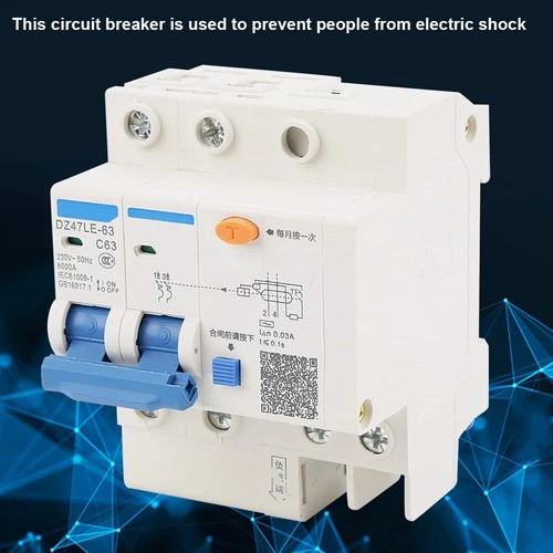 DZ47LE‑63 2p N C63 RCCB Residual Current Circuit Breaker 230V 63A 30mA