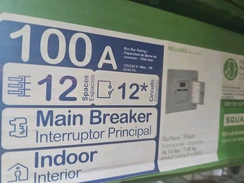 Square D QO 100 Amp 12-Space Indoor Main Breaker Box Panel 120/240 - QO12M100PC