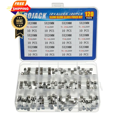 BOJACK 12 Values 120 pcs Slow Blow Glass Fuses Assortment Kit 5x20mm Silver