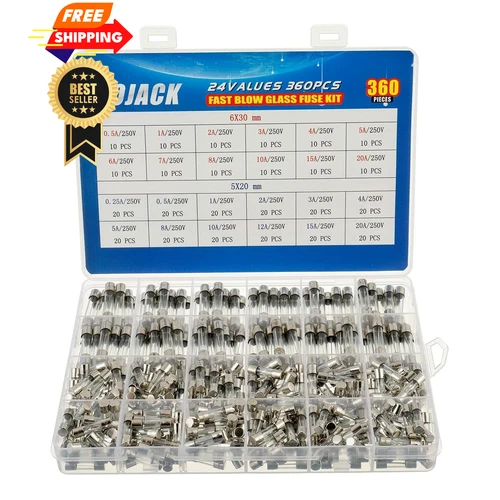 BOJACK 24 Values 360 pcs Fast-Blow Glass Fuses Assortment Kit 5x20mm 250V...