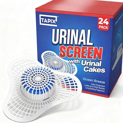 24 Pack Urinal Deodorizer Screens with Urinal Cakes, Ocean Breeze Scent, Anti-Sp