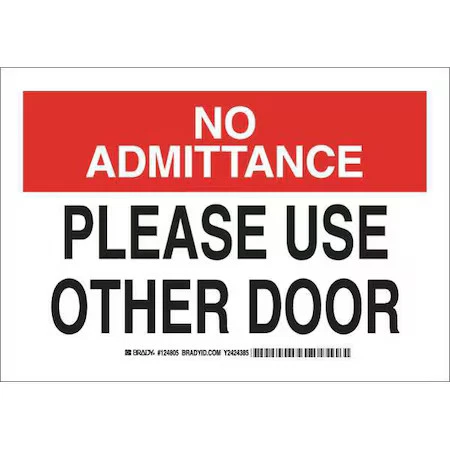 BRADY 124803 No Admittance, Please Use Other Door, 10" W x 7" H, Rectangle,