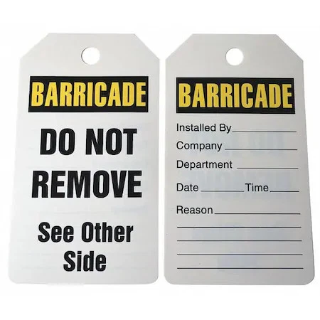 Barricade Tag, Cardstock, 5 3/4 In H X 3 1/4 In W, 25 Pk, 43Z353