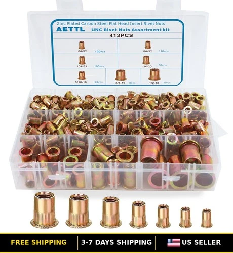 413pcs Zinc Plated SAE UNC Rivet Nut Assortment Kit with Inserts and Fasteners