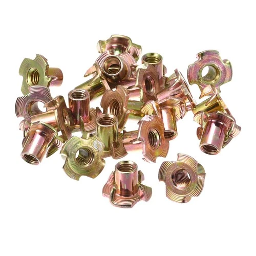 M6x10mm T-Nuts 4 Pronged Tee Nut Carbon Steel Threaded Inserts for Wood 24pcs