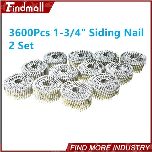 2 Set 3600Pcs Siding Nails 1-3/4" × .092“ Collated Wire Coil Full Round Head
