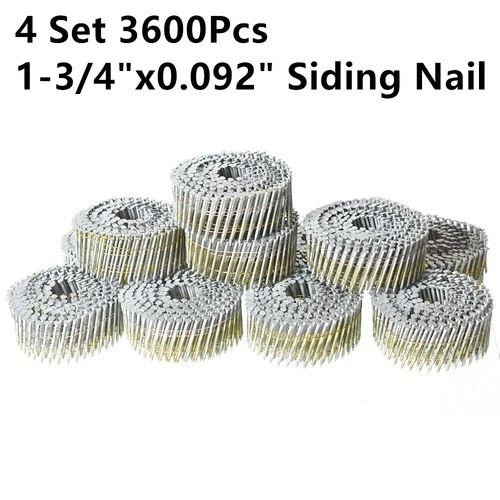 3600Pcs Siding Nails 1-3/4" × .092“ Collated Wire Coil Full Round Head 4 Set