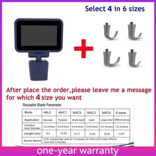 Touch Screen Digital Video Laryngoscope with 4 Reusable Sterilizable Blades