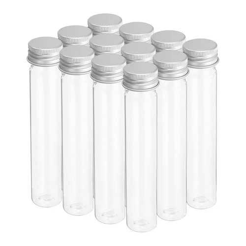 12 Pcs 65ml Plastic Test Tubes with Screw Caps 150x27mm Flat Bottom Silver Tone