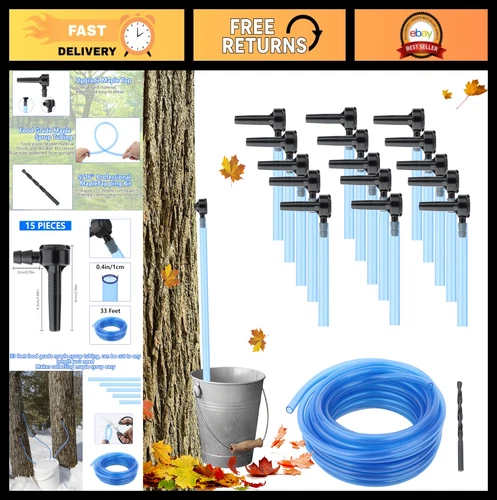 Maple Syrup Tapping Kit - 15 Taps, 33ft Food-Grade Tubing & Drill Bit - Beginner