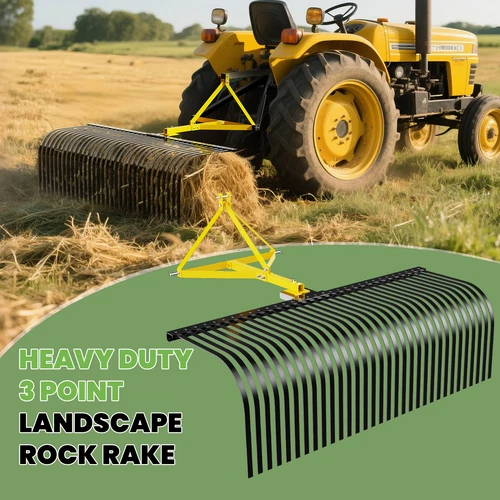 60" 3 Point Landscape Rock Rake For Category 1 Tractor Rotate 360°