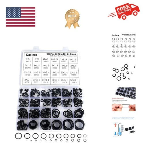 400 Pcs Rubber O-Rings Assortment Kit, 24 Sizes Rubber O-Ring Sealing Seal As...