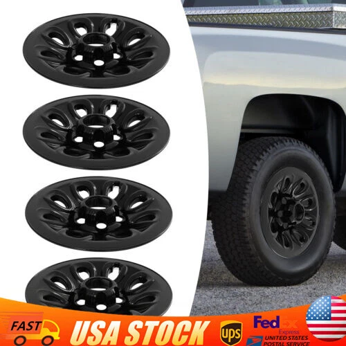 Set of 4 For Chevy Silverado 1500 Black 17" Wheel Skins Hub Caps Full Rim Covers