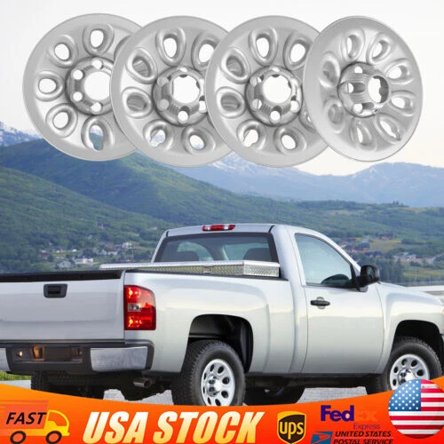 4 Silver 17" Wheel Skins Hub Caps Full Rim Skin Covers For Chevrolet Silverado