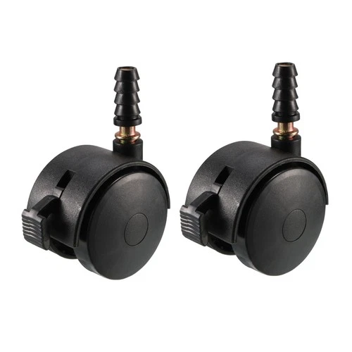 1.85 Inch Swivel Caster Wheels Grip Neck Stem Caster Black Wheel with Brake 2pcs
