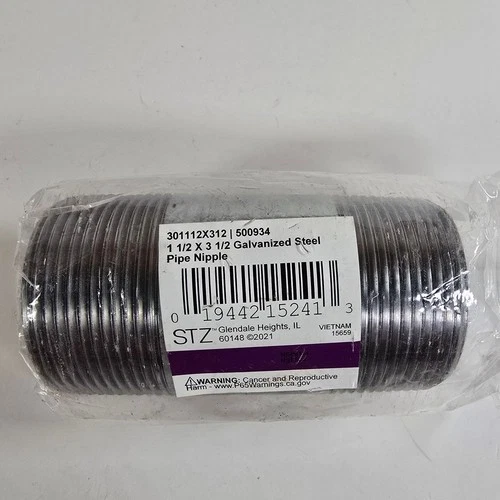 STZ 301 Galvanized Steel Pipe Nipple 1-1/2" X 3-1/2 500934