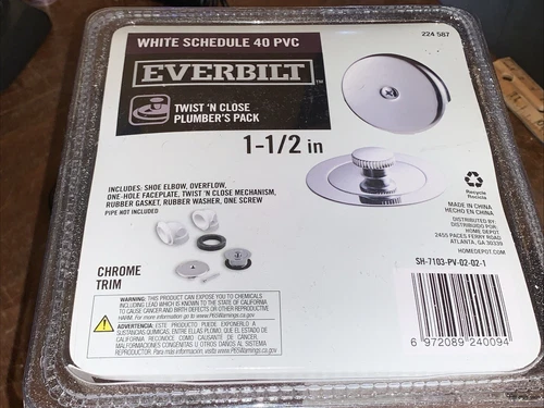 Everbilt White Schedule 40 PVC Twist Close Plumber's Pack 1-1/2" Chrome NIB NEW