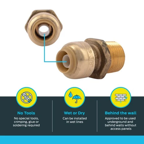 RELIANCE WORLDWIDE MWI012826LF Connector 3/4" Brass Push-Fit MNPT