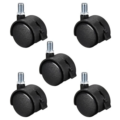 Furniture Casters 1.5 Inch Nylon M10 x 15mm Threaded Stem Swivel w Brake 5 Pcs