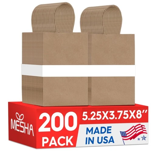 MESHA Kraft Gift Bags 200 Pack 5.25x3.75x8 Inch (Pack of 200), Brown