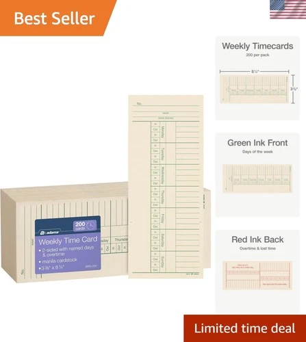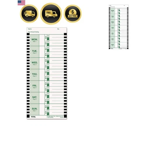 Weekly Employee Time Card Pack, 100 Count E8 Thermal Print Timesheets, Single...