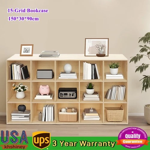 3 Tiers 15-Compartment Bookcase Large Capacity 15 Cubes Storage Display Shelf