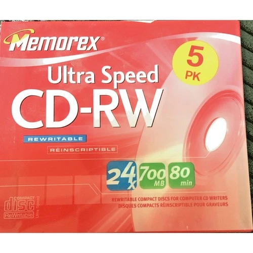 Memorex CD-RW 5 Pack 700MB 24x Rewritable Discs New Sealed