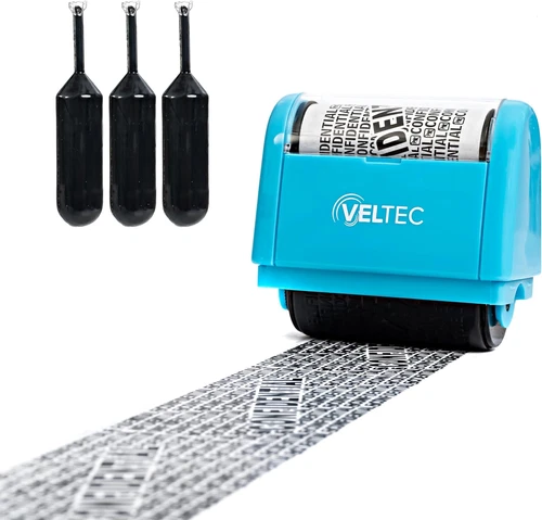 Veltec ID Protector Ink Roller - Identity Theft Protection Roller Stamp Set (Blu