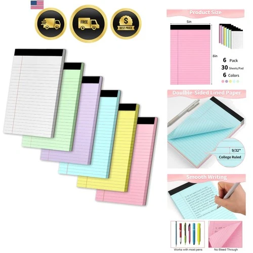 Legal Pads 5" X 8", 6 Pack Colored Note Pads, College Ruled Yellow Lined Pape...