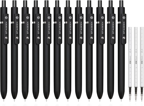 Black Gel Pens GX3, 12Pcs Fine Point Smooth Writing Pens with 3 Extra Refills, Q