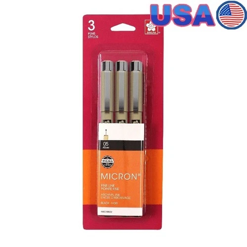 Sakura Micron Fineliner Pens 05 Tip 3-Pack Waterproof Archival Ink Smudgeproof
