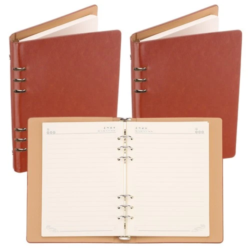 6 Ring Binder Cover 2pcs A5 Leather Notebook Binder with 160 Sheets Paper, Brown