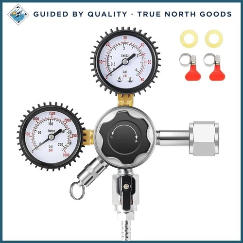 Kegerator CO2 Tank Regulator with Sintered Brass Filter and Pressure Monitoring