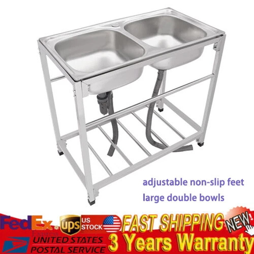 Commercial Stainless Steel Sink, Kitchen Freestanding Double Bowl Utility Sink
