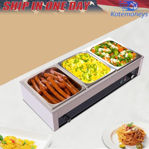 3-Pan Commercial Electric Food Warmer Steam Table Buffet Bain Marie Countertop