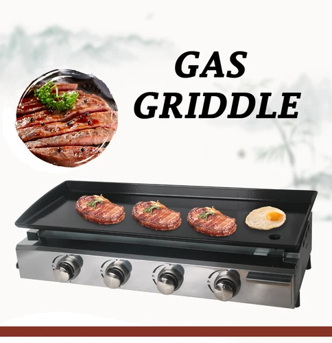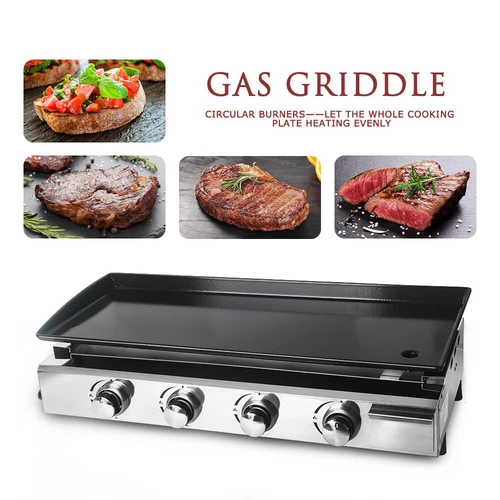 LPG Gas Griddle Plancha BBQ Burger Grill Cooking Portable Hotplate 4 Burners New
