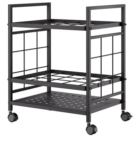 Black Metal 3-Shelf Open Utility Cart with Wheels, 43cm x 32cm x 45cm