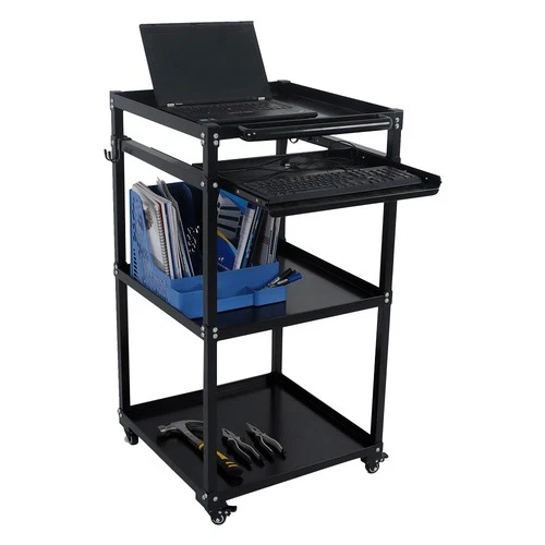 3-Shelf Aluminum Workstation Cart Utility Presentation Cart With Keyboard Tray
